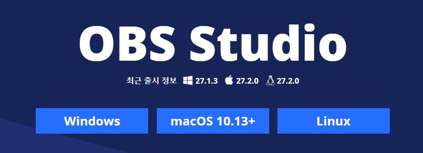 OBS Studio는 OBS 공식 배포 페이지에서 다운로드가 가능합니다. 아래 OBS 공식 배포 페이지로 이동해 자신의 운영체제에 맞는 OBS Studio를 선택해서 다운로드합니다.