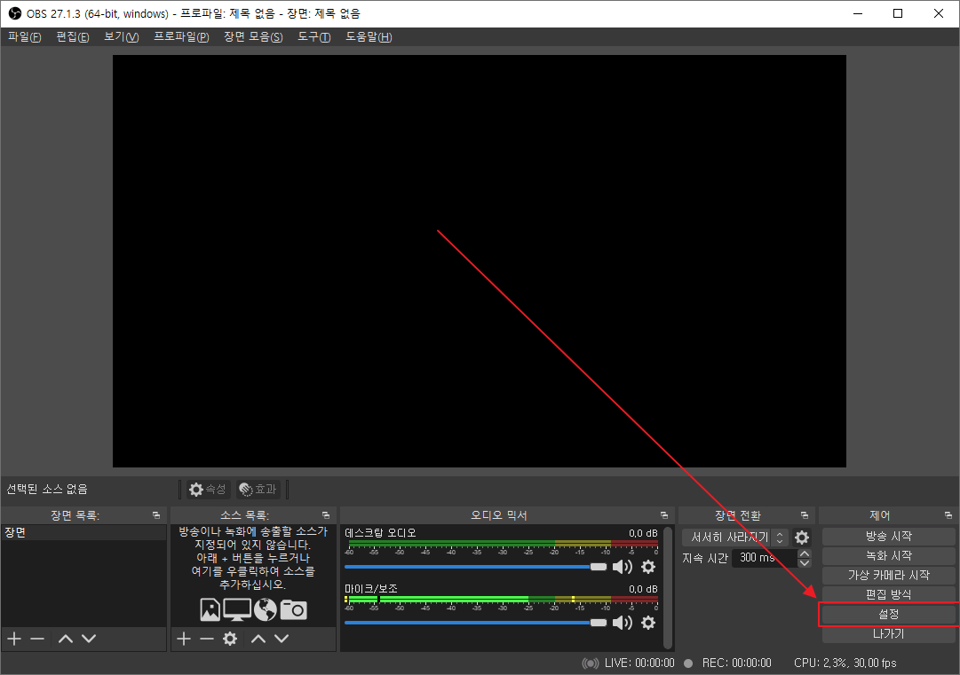 OBS 초기 설정 방법