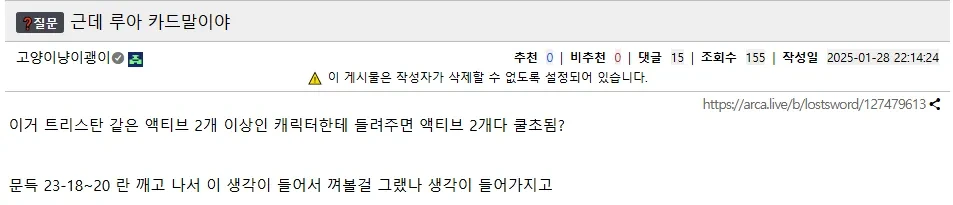오? 천잰데? 하는 생각이 들어서 당장 실험 돌입... 혹시나 모르시는 분들을 위해 루아의 카드는 아래와 같음.