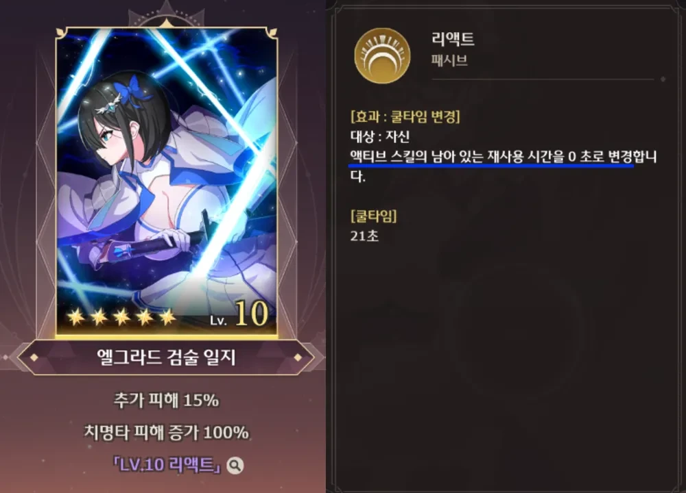 위 실험들의 토대로 루아 카드의 [리액트]는 현재 버그에 가까운 상태인 것으로 추정됨. 덧붙여서 공격 스킬 다른 건 안했냐고 물어볼 수 있는데 어차피 다른 캐는 1개의 액티브 공격 스킬을 가지고 있어 의미가 없다고 봄. 어차피 적용되니까.