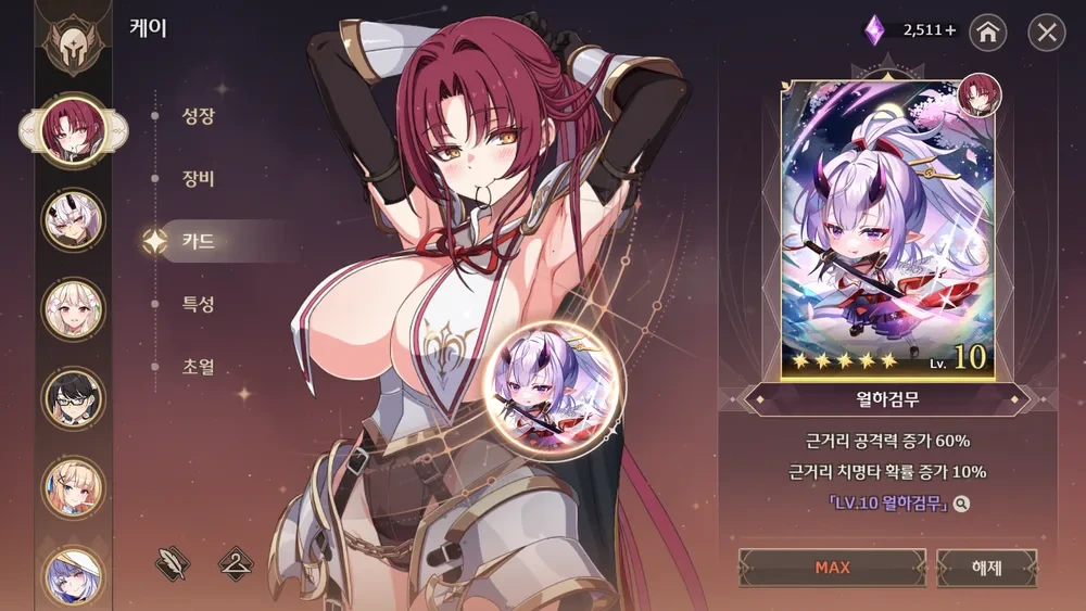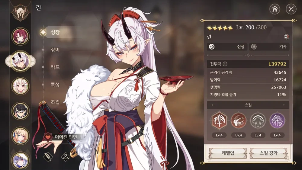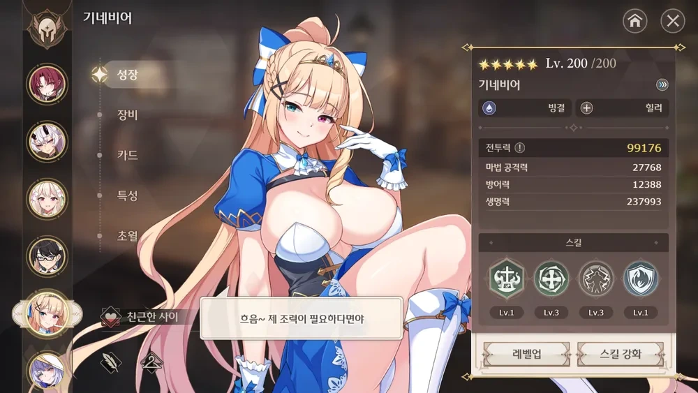 여기 까진 뭐 애초에 궁쿨 젤 낮은 기네비어 궁쿨 나오기도 전이라.. 그냥 깡스펙 올리는 수 밖에 없다.