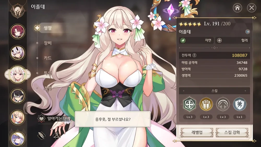 이런것도 본인의 장비와 돌파 상태를 보고, 제일 약한 힐러한테 종신계약을 맺어주는 걸 추천한다.