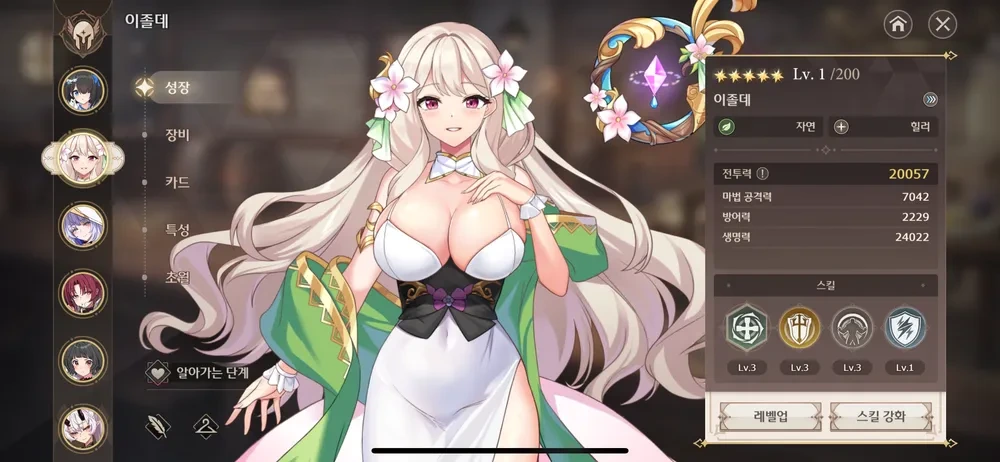 일부러 실험 캐릭터 전부 레벨 1에 장비 카드 다 뺌. 힐 계수는 평타 한 번 힐량 / 본인 마공으로 계산함.