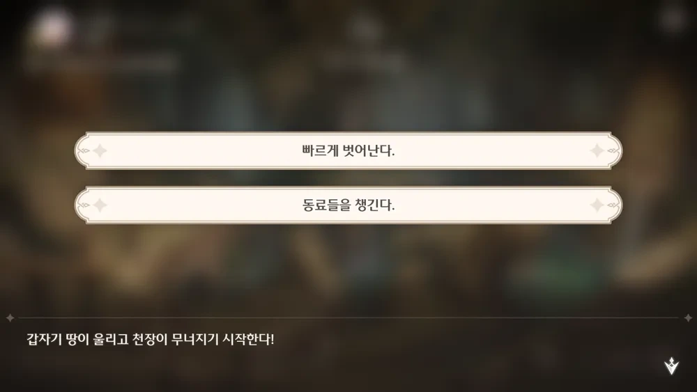 갑자기 땅이 울리고 천장이 무너지기 시작한다!
