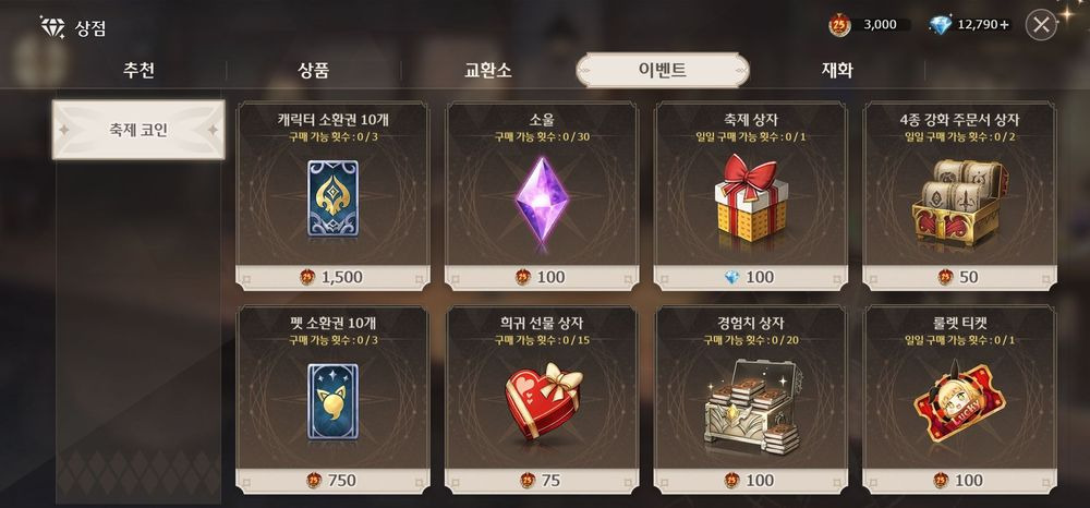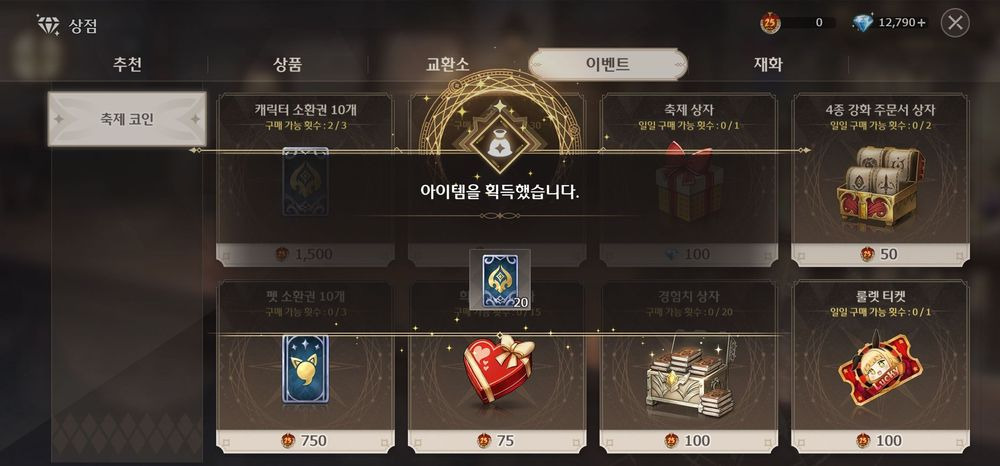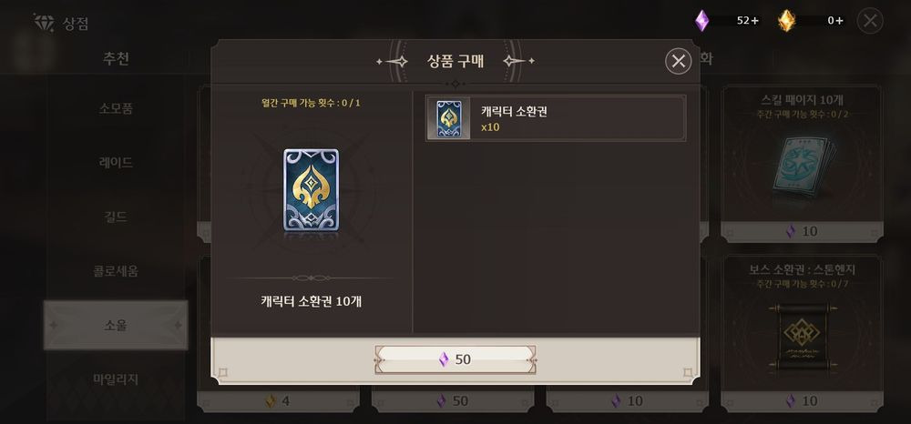소울로 구매한 뽑기권 + 다이아로 횟수채우면