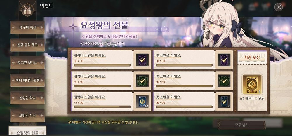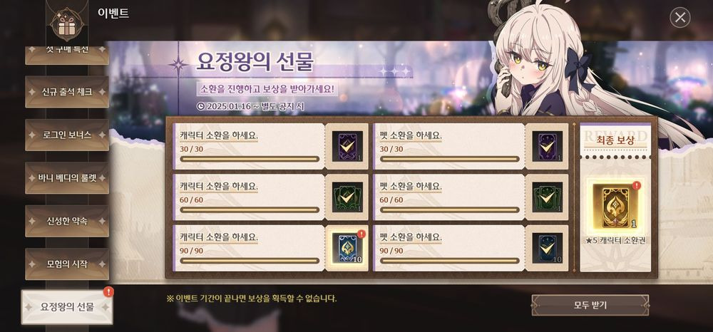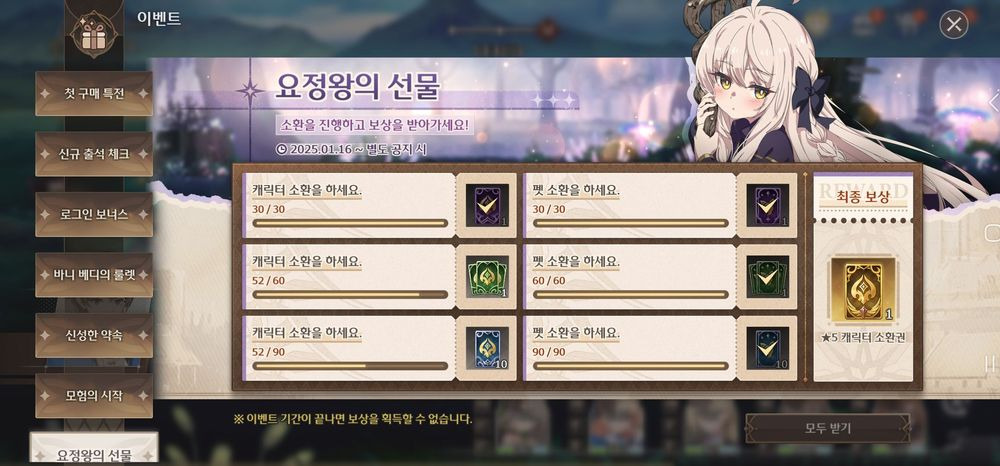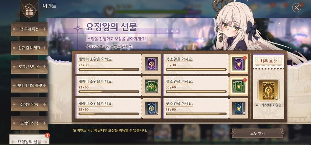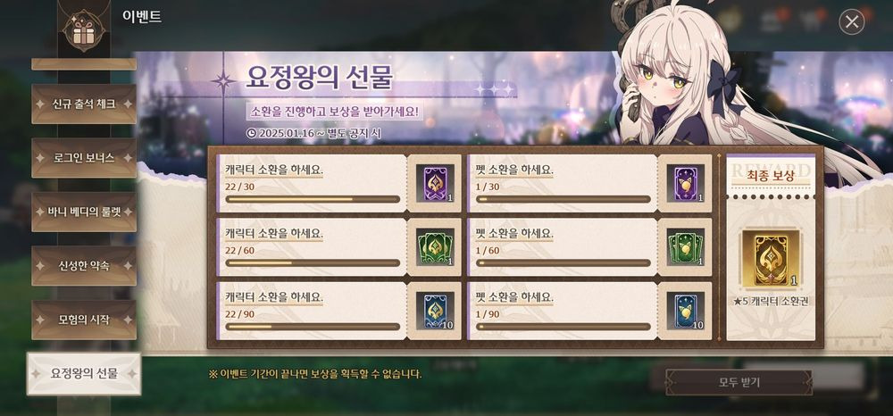 이건 무료소환으로 떼울꺼임 그 뒤에 1-12까지 밀어서 우편함 열리면 사료 받고