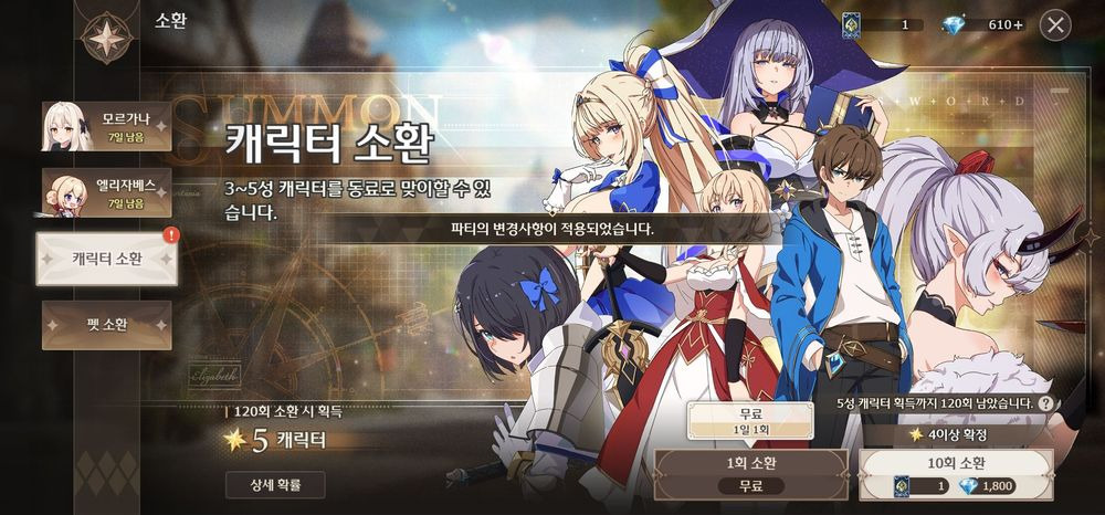 1-20깨면 소환퀘 주면서 캐릭뽑 10뽑권+소환권 1개 주는데 10뽑권 써주면