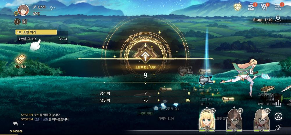 먼저 1-10까지 오면 소환하라고 퀘스트 오는데