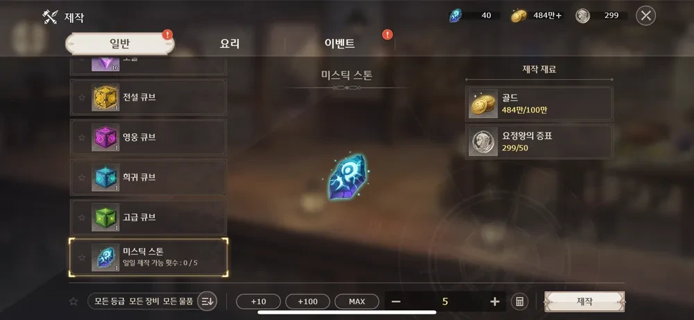 매일 5개 제작 가능한데 100만 골드씩 빨아가는