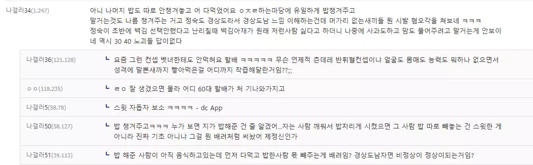 더운데 땀흘리면서 밥해준 사람한테 한다는 말이 "짜다"