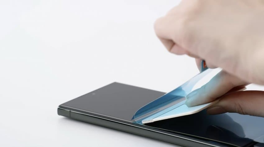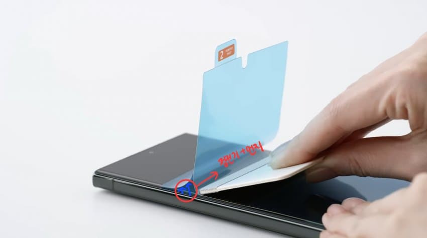 다들 이렇게 처음에 필름을 들고 그 안쪽에 부착되어 있는 필름을 벗기면서 부착할거 아냐