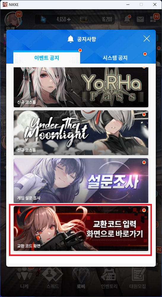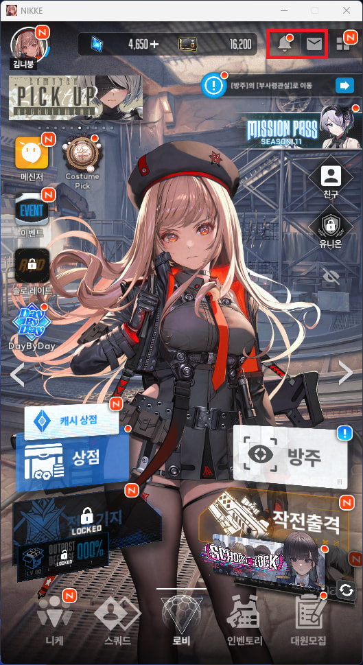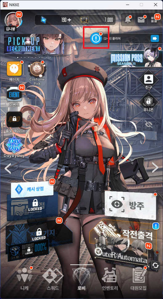 [니케] 탭으로 돌아가서 라피를 눌러줌