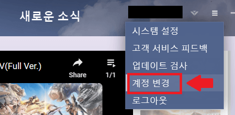 리세끝나면 게임 끄고 나오는 창에서 계정변경 누르면됨