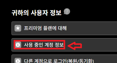 사용중인 계정 정보를 누르면 아이디 비번이 나오니