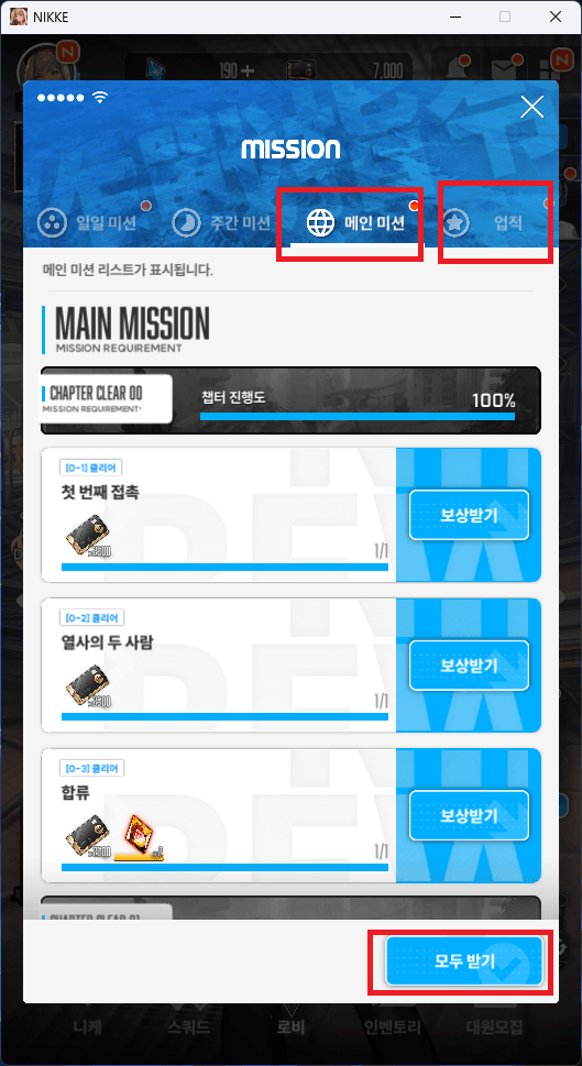 여기로 돌아와서 업적 보상까지 받으면 끝