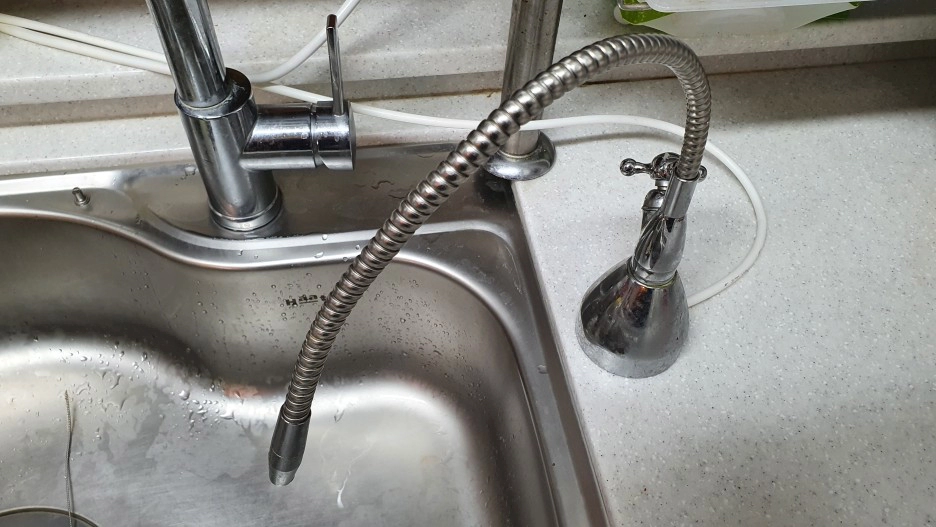 기존에 가지고 있던 싱크대용 파우셋이다. 집을 임대로 살다 보니 구멍을 뚫는 제품이 아니고 아무 데나 놓고 쓸 수 있는 모델로 가지고 있었는데, 기사님이 오실 때 요청해서 같이 설치했다.