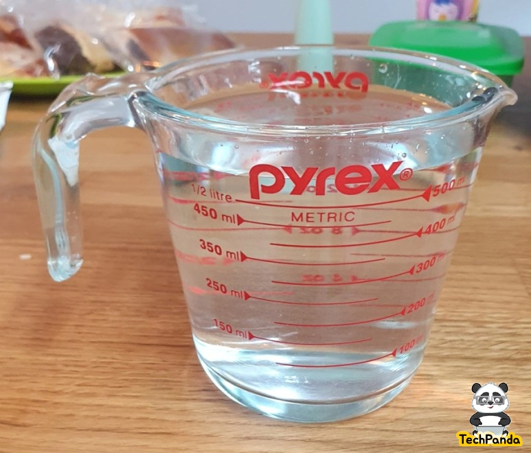 우선 집에 있는 계량컵으로 실험을 해 보았어요. 500ml까지 계량이 가능한 컵이다. 컵을 물을 받을 수 있는 곳에 올려놓고 500ml로 설정을 하고 출수 버튼을 눌러보았다.