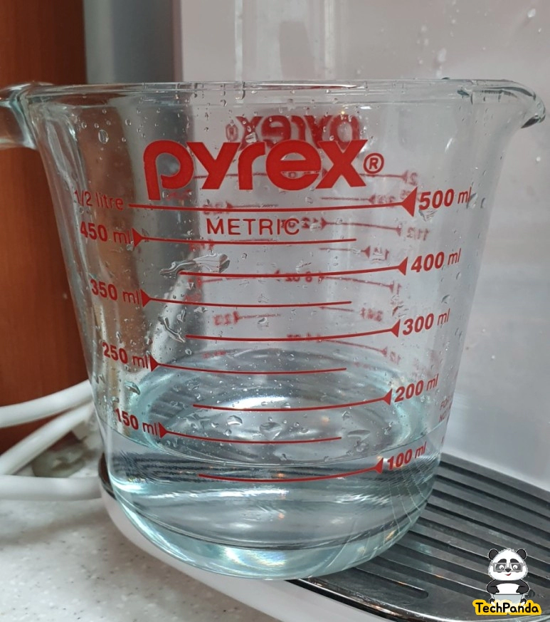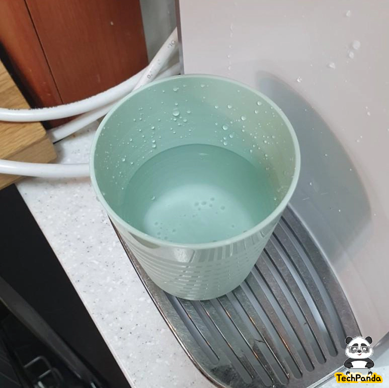 그리고 출수된 물의 양을 보았더니 거의 550ml에 맞게 출수 된것을 볼 수 있다. 필자가 실험한 집은 수압이 약한 편인데도 양을 거의 정확하게 나오는 걸 보니 믿음이 갔다. 정수기 내부에 물의 양을 측정할 수 있는 센서가 있는데 이 센서가 물의 양을 정확히 측정하고 있다.