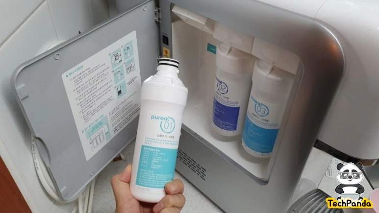 필터를 교체하신 후에 바로 물을 사용할 경우 공기방울이 생기는데 문제가 있는 건 아니다. 필터를 교체하는 자세한 방법에 대해서는 뚜껑에도 붙어 있으니 참고하신다면 필터 교체는 정말 쉽다