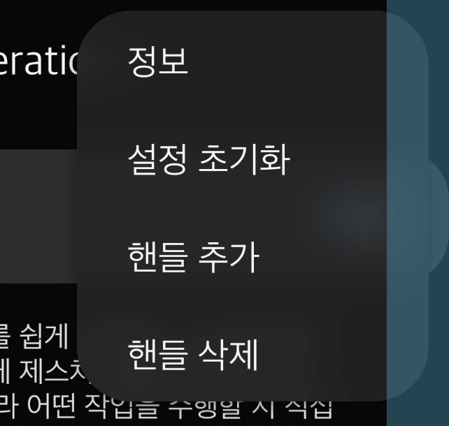 여기까지만 보면 원핸오 없이 사용하는 기본 제스쳐와 동일한데 위아래 양 옆에 추가된 핸들을 보자
