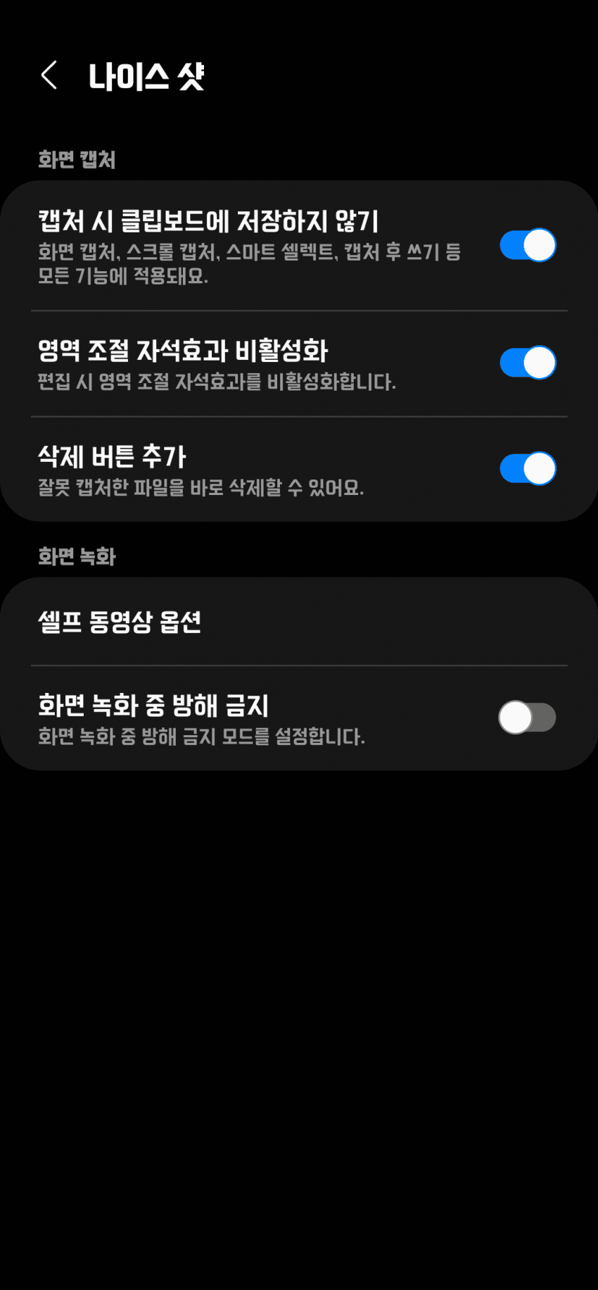 별 설명할거없이 위에 3개 다키자. 특히 삭제 버튼 추가 저거는 얼마나 편하나면 실수로 캡처한거 바로 지울수있음 ㄹㅇ개꿀