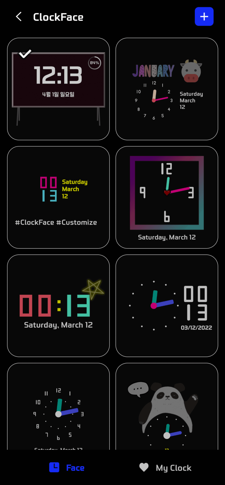 우측상단에 +버튼 누르면 나만의 시계도 만들수있으니 참고.