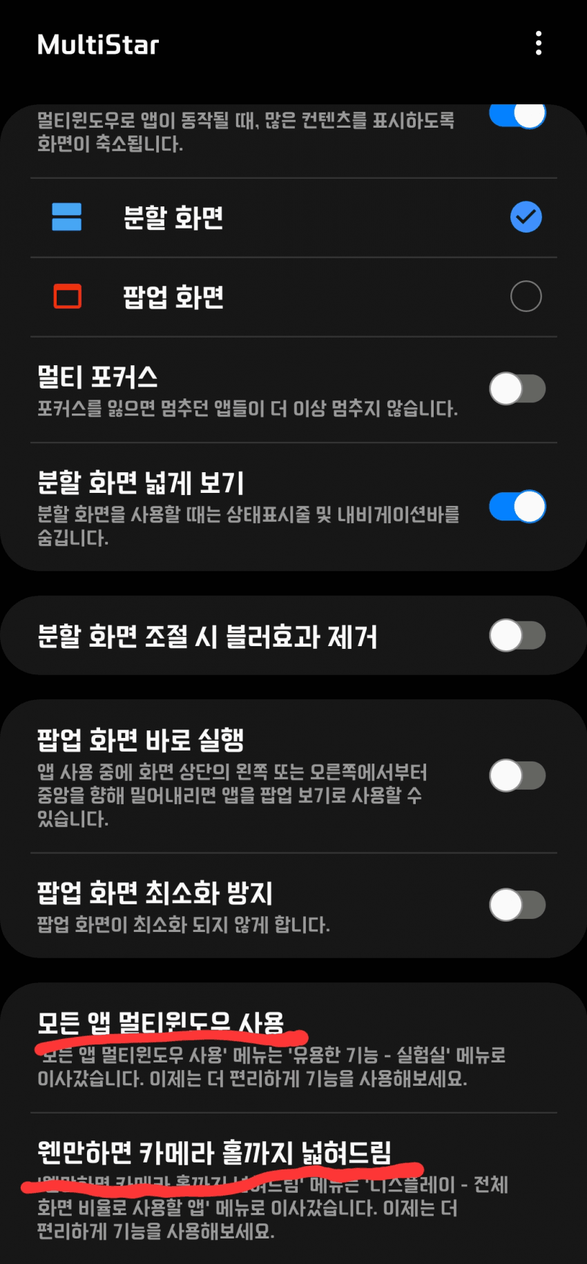 모든앱 멀티윈도우 저거는 멀티 못하는것도 할수있게 해주는거임.