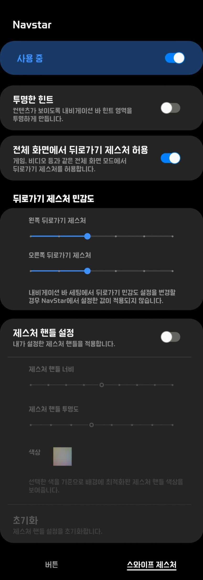 전체 화면에서 뒤로가기 제스처 허용 켜주고