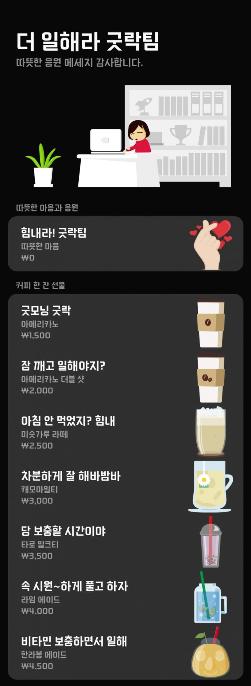 뭐 마음만도 전할수도있고 음료 보낼 수 있음.