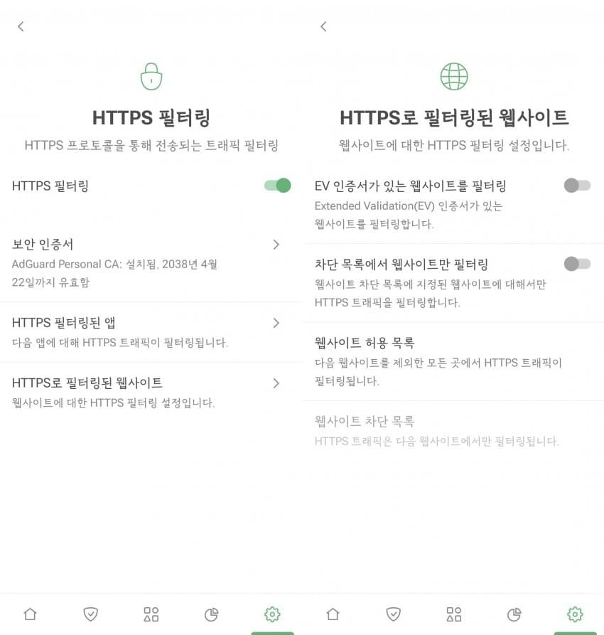 [필터링 - 네트워크 - HTTPS 필터링 - H필앱]