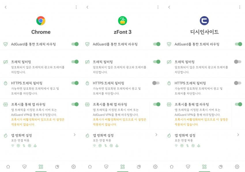 단, 보다시피 디시 공앱은 라우팅은 켜되 그 밑에 트래픽 필터링은 꺼라. 왜냐면 저렇게 해야 좆같은 디시 공앱 무한로딩이 90% 이상 없어지기 때문이다.