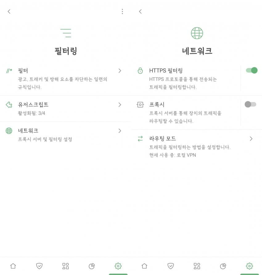 HTTPS 필터링만 켜라.