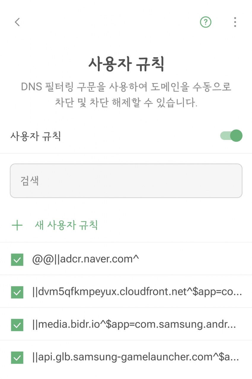 Adguard DNS는 끄고, AdGuard DNS filter 뭐시기만 켜라. 그리고 사용자 규칙에 들어가서...