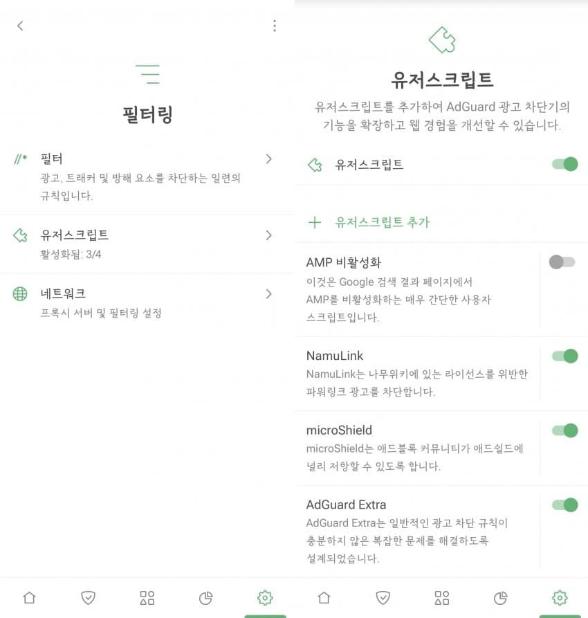 AMP 비활성화 끄고 AdGuard Extra 켜놔라. 그리고 NamuLink와 microShield 추가해라.