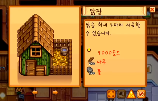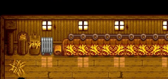 로빈에게 사일로를 지은 다음 잡초를 낫으로 베면 자동적으로 사일로에 건초가 되어 들어가. 만약 축사를 끝까지 업그레이드 했다면 건초가 자동배급이 되고 아니라면 위의 사진 부화기 옆에 건초배급기에서 손으로 꺼내 먹이통에 넣으면 됨.