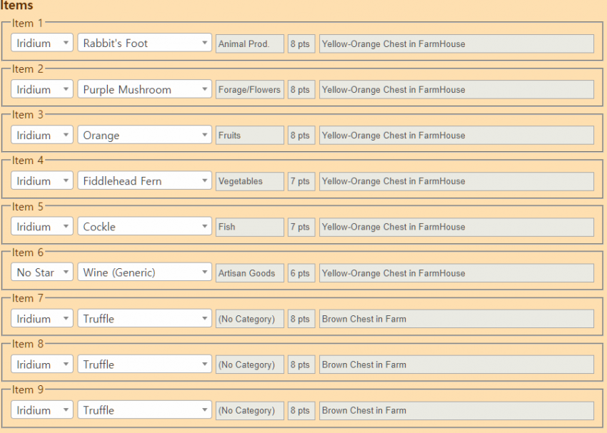 세이브 파일을 넣으면, 가을 품평회 때 9개 전시를 본인이 가진 뭘로 채우면 1등 할 수 있는지 알려준다.