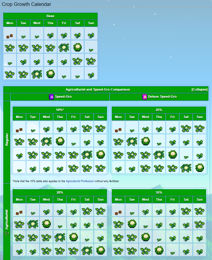 갠적으로 2번 위키페이지만 잘 써도 하루 계산 미스해서 28일에 농작물 300개 날려먹는 나 같은 참사는 안 일어날 것 같아서 올림.