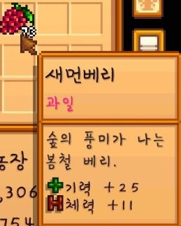 새먼베리는 판매가가 꼴랑 5골드밖에 안되기 때문에 팔거나 가공해도 돈이 전혀 안되고, 먹기에 아주 좋아.