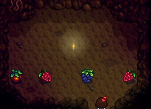 총 획득 골드가 25000골드가 되면, 다음날 아침에 드미트리가 등장해서 농장 안에 있는 동굴을 박쥐(과일) 동굴로 개조할지 버섯 동굴로 개조할지 물어본다.