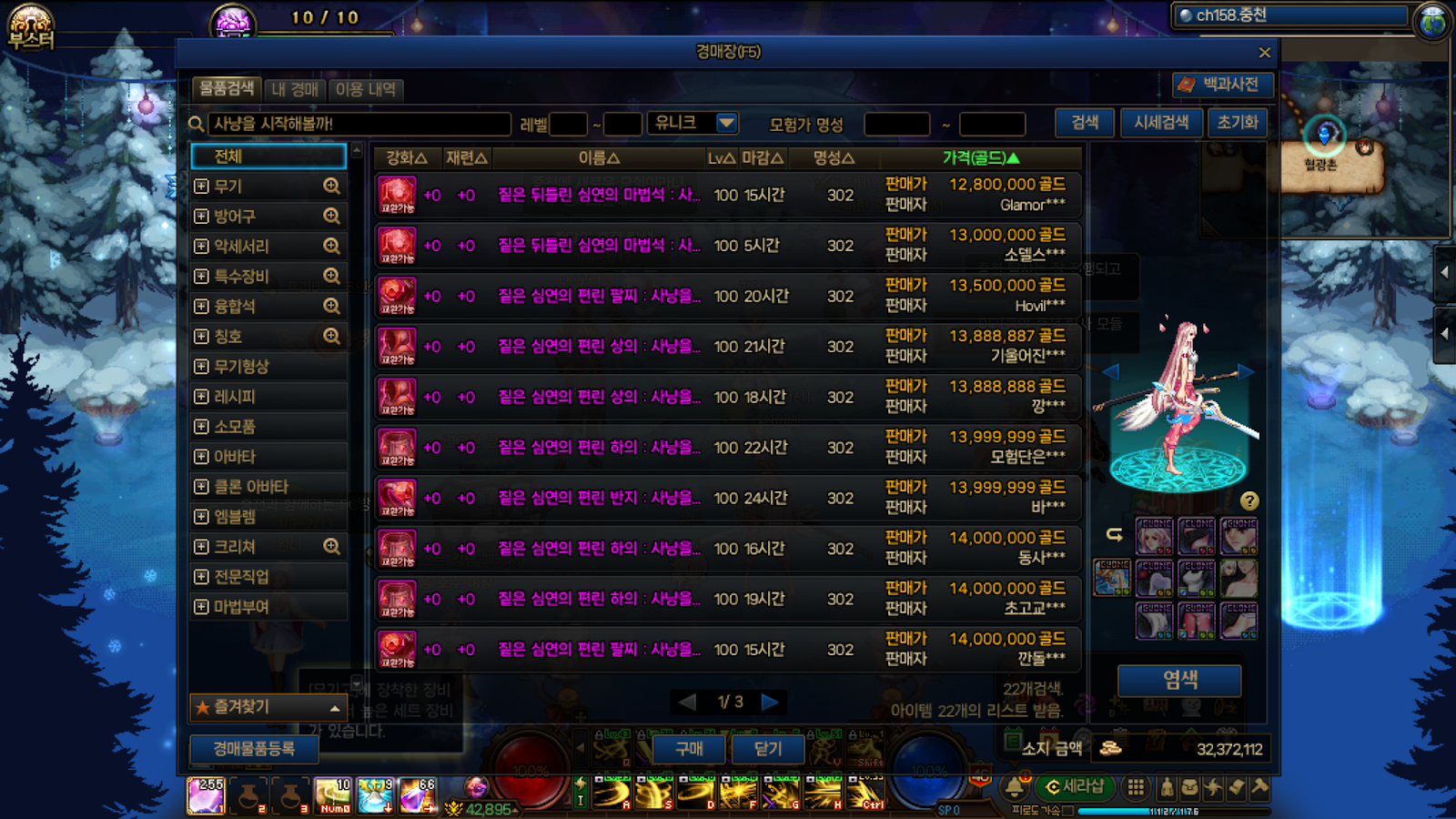 ※인기 전직의 경우 전직용 아이템의 가격이 부담되실 수 있습니다