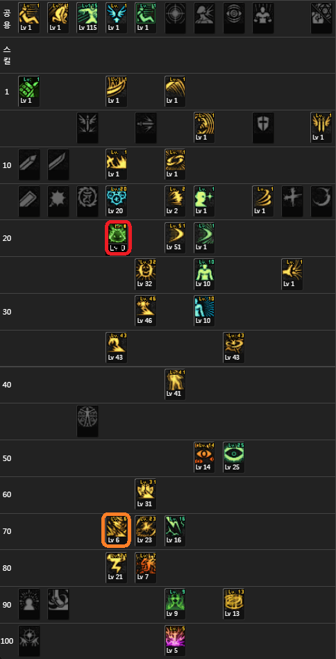 만약 크리티컬이 모자라다면 폭염을 1개씩 빼고 관조를 1개씩 주면 됨 ( 위 스샷 강조 해놓은 스킬)