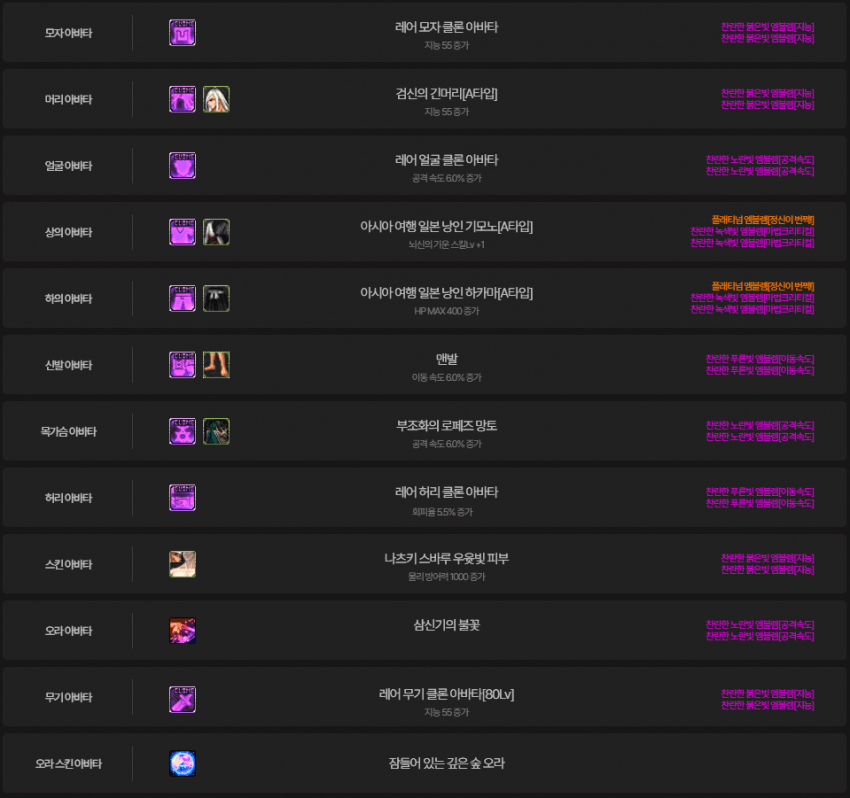 레어 무기 클론아바타 및 칭호는 80제