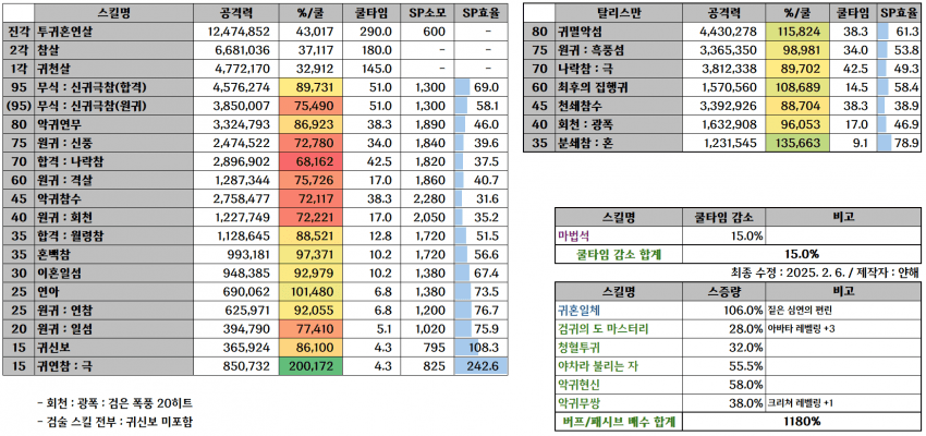 이 스킬은 일반시전, 귀신보시전, 원귀시전 총 3종류로 사용가능함