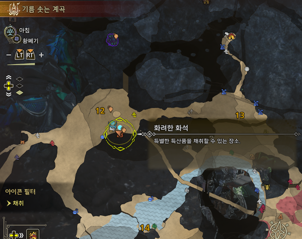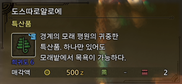 모래 평원의 '유백색 결정 덩어리'는 출현 메시지가 나타나지 않는다.