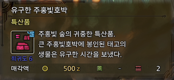 (주의) 희귀도 6 특산품 중 특수한 조건일 때 채취할 수 있는 아이템은 가끔 BOX에 등록되지 않는다. (아이템을 획득한 뒤 BOX에서 확인 요망/특히 반짝 표시 붙은 아이템)