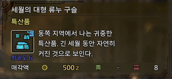 < 희귀 특산품 목록 : 희귀도 6인 경우 제목 강조해둠 >