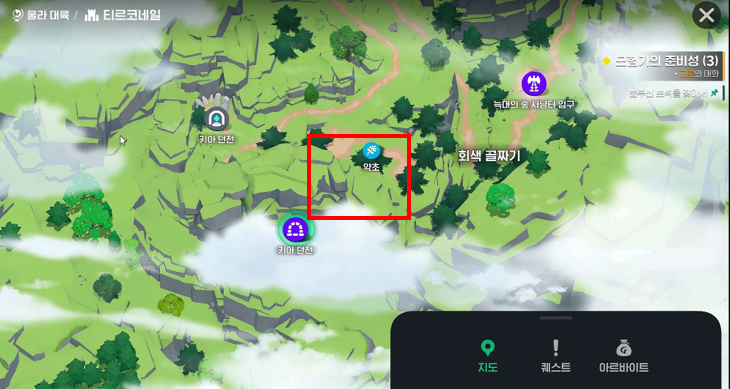그 퀘스트가 이어지는 내용이며 3번 퀘스트는 얼음 협곡 맵에서 "비칸" 이라는 강아지 아이콘을 눌러서 시작하시면 됩니다!