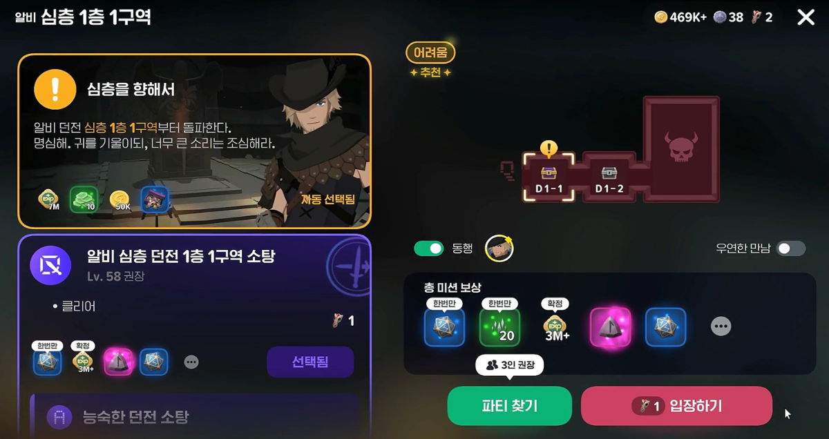 심층던전 부터는 파티 사냥이 필수 입니다. 난이도가 엄청 어려워 집니다.