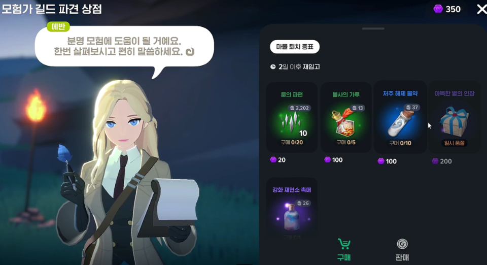 습득처 : 일일미션, 친철한 모험가를위한 상점 (여관), 아이템샵(캐시), 멤버쉽 일일 지급 50개 등