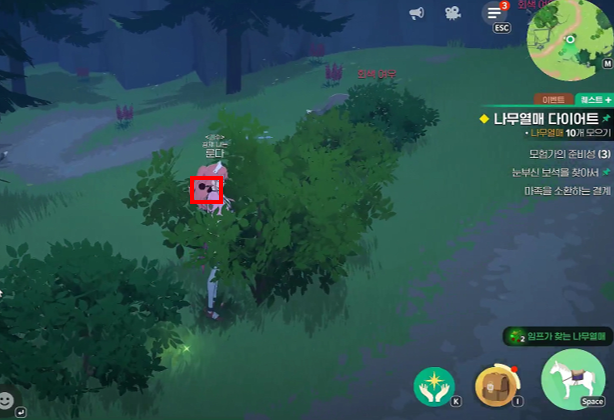 나무 열매는 주변 수풀에서 캐릭터로 이동(비비기?)를 하시다보면 땅바닥에 자동으로 떨어집니다!